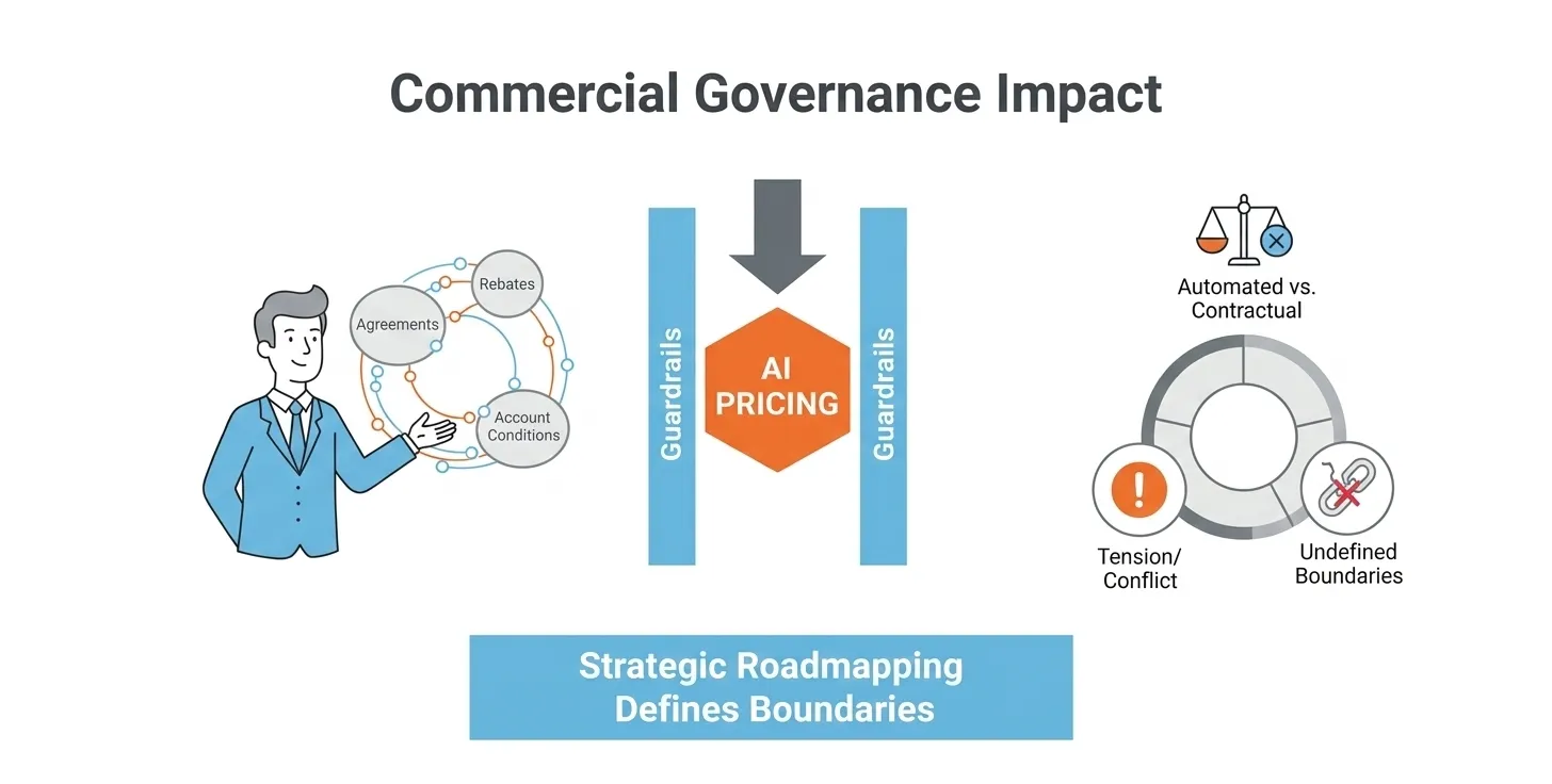 In negotiated B2B environments, pricing is structured around agreements, rebates, and account-specific conditions. Introducing intelligent pricing requires clarity around how far automation can operate within those commercial boundaries. If guardrails are not clearly defined, tension can emerge between automated recommendations and long-standing contractual expectations. Strategic roadmapping forces these boundaries to be made explicit before automation expands.