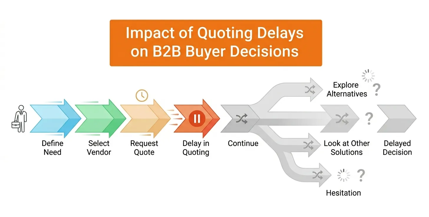 Time plays a central role in B2B purchasing.When quoting depends on multiple steps checking contract based pricing, confirming configurations, and waiting for approvals response times naturally increase. What starts as a straightforward request can stretch across hours or days.