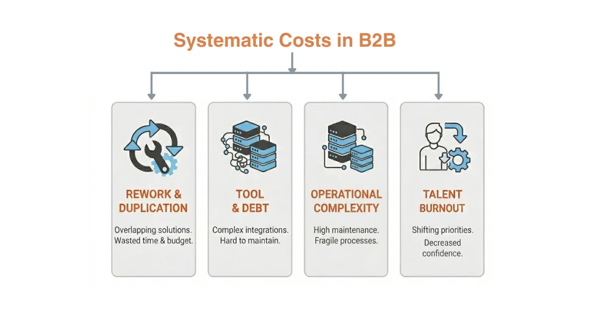 The absence of a strategic roadmap rarely appears as a single line item on a budget. Its impact accumulates quietly, revealing itself over time as friction, inefficiency, and lost momentum rather than immediate failure. In high-touch B2B environments, these costs are often systemic: