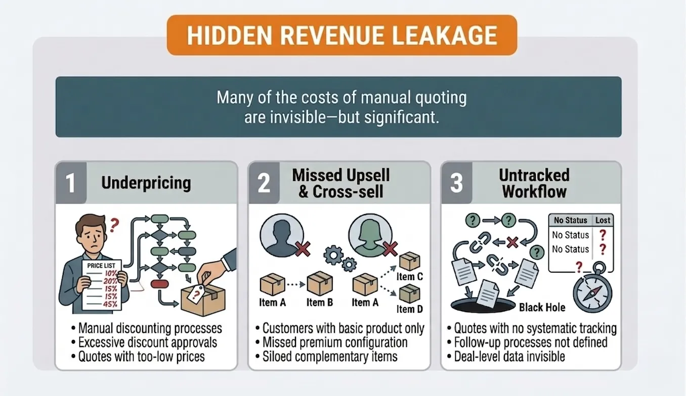 Manual quoting lacks the structure needed to systematically capture value. As a result, revenue leaks quietly across the process.