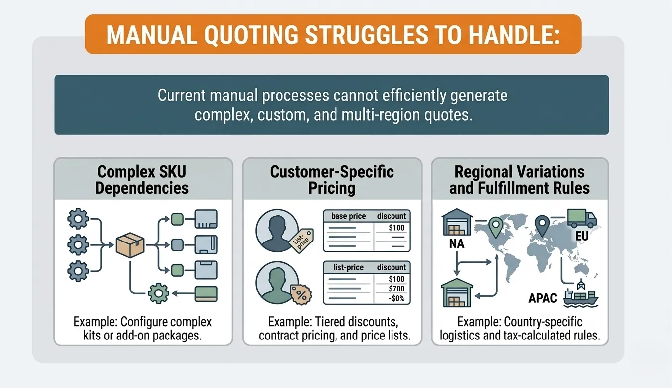 Manual quoting turns salespeople into processors instead of revenue drivers.