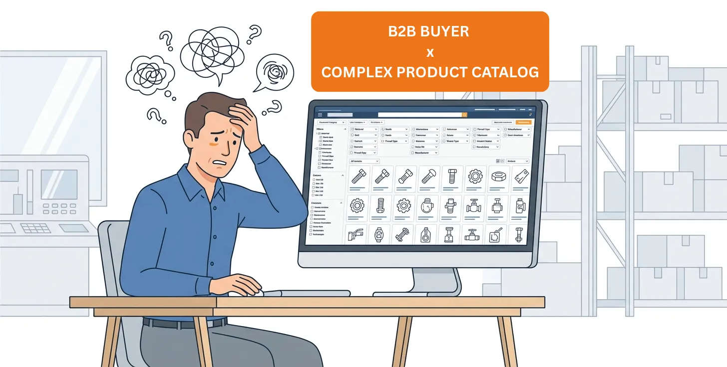 In many B2B environments, product catalogs are far from simple. They often include tens of thousands of SKUs, each with its own technical attributes, variations, and compatibility requirements. Choosing the right product can require understanding specifications, operating conditions, industry standards, or environmental constraints.